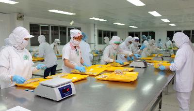 Chế biến thực phẩm tại Công ty CP Chế biến xuất khẩu Cầu Tre (Tổng Công ty Thương Mại Sài Gòn). Ảnh: Thanh Vũ - TTXVN |